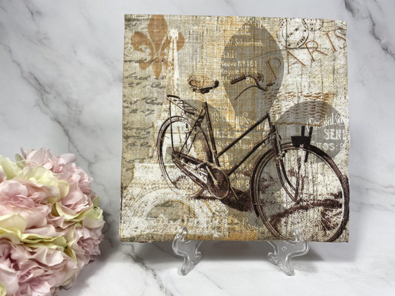 Fiets (33x33 cm open gevouwen ). Te gebruiken voor decoupage .