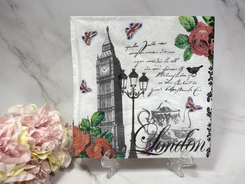 Londen Big Ben tea time servet (33x33 cm open gevouwen )Te gebruiken voor decoupage .