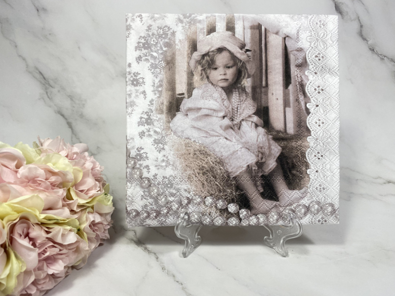 Vintage servet meisje  (33x33 cm open gevouwen ) .Te gebruiken voor decoupage .
