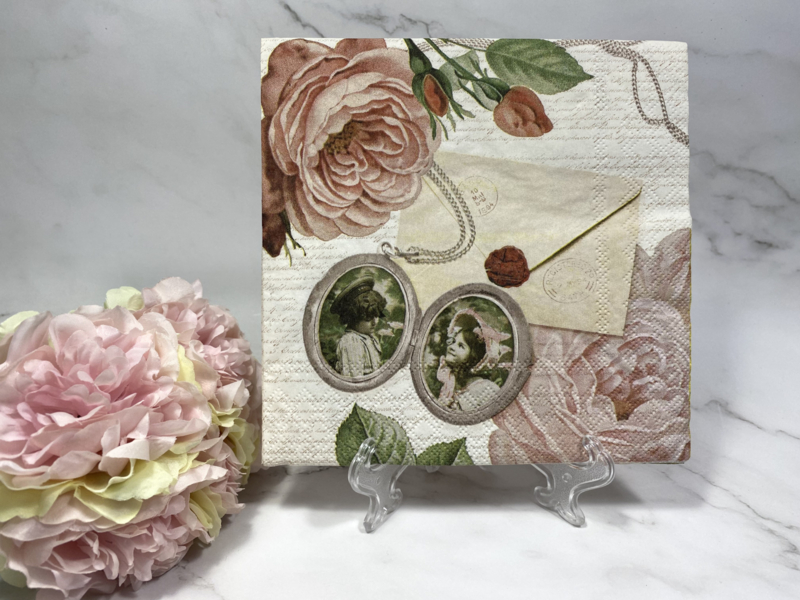 Medaillon servet (33x33 cm open gevouwen ) .Te gebruiken voor decoupage . 2x2 afb.