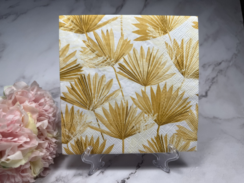 Goud kleurige palm bladeren servet (33x33 cm open gevouwen ).Te gebruiken voor decoupage .