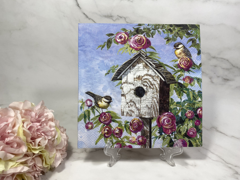 Vogelhuis servet (33x33 cm open gevouwen ).Te gebruiken voor decoupage .