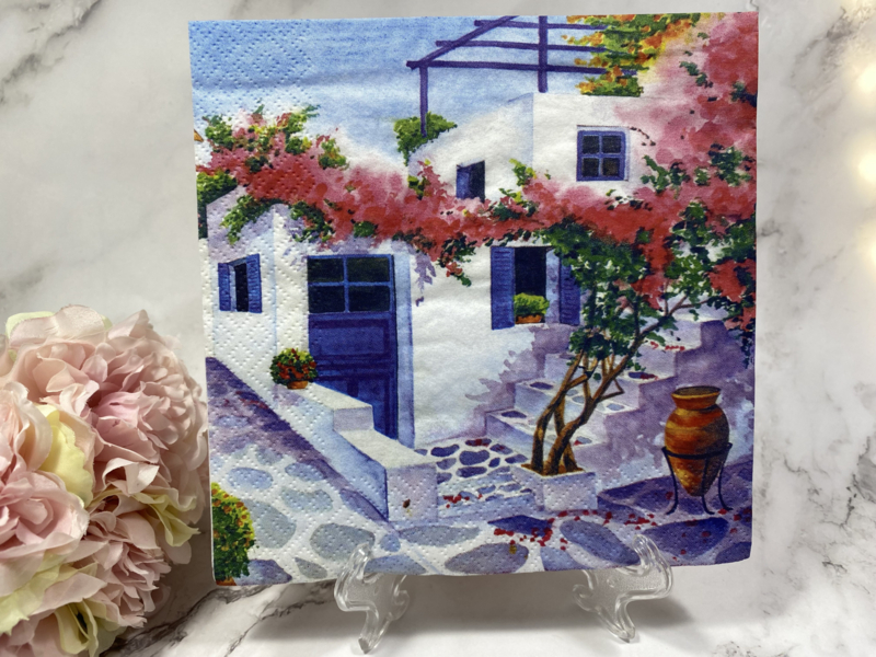 Grieks huis servet (33x33 cm open gevouwen ).Te gebruiken voor decoupage .