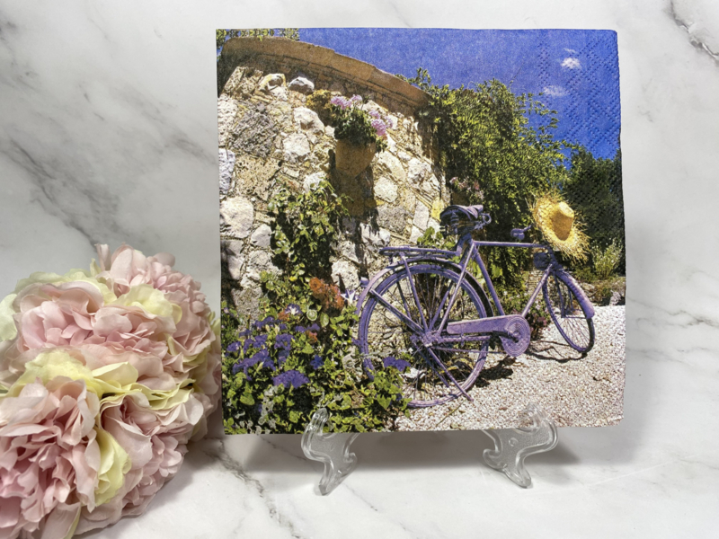 Fiets in Frankrijk servet (33x33 cm open gevouwen ).Te gebruiken voor decoupage .