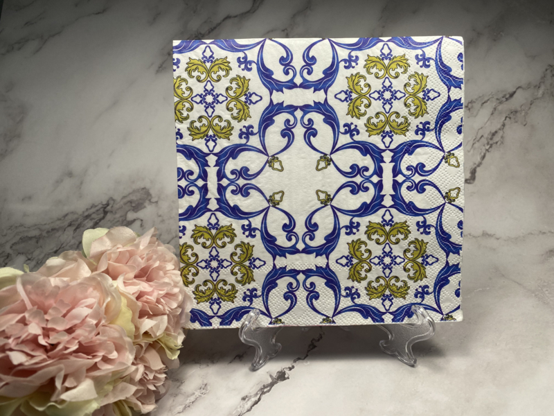 Blauw en goud kleur patronen servet (33x33 cm open gevouwen ).Te gebruiken voor decoupage .