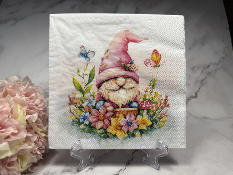 Gnome in tuin servet (33x33 cm open gevouwen ).Te gebruiken voor decoupage .