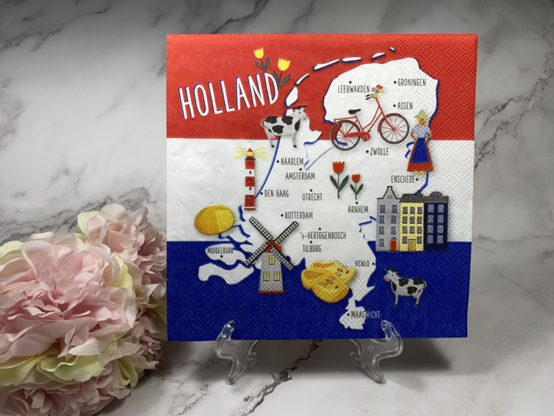 Holland kaart servet (33x33 cm open gevouwen ).Te gebruiken voor decoupage .