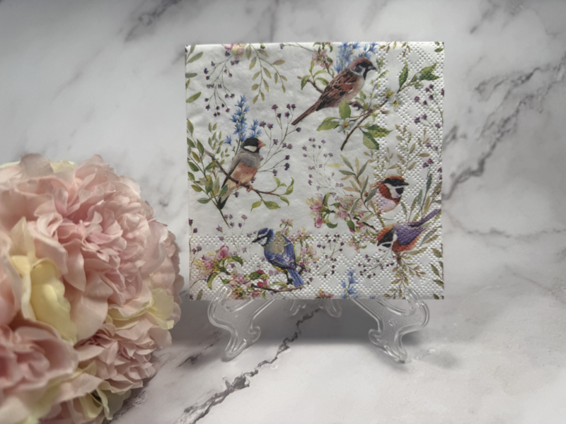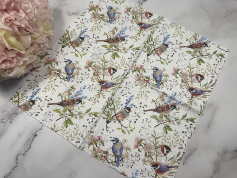 Veel kleine vogels knutsel servet (25x25 cm open gevouwen ) .Te gebruiken voor decoupage .