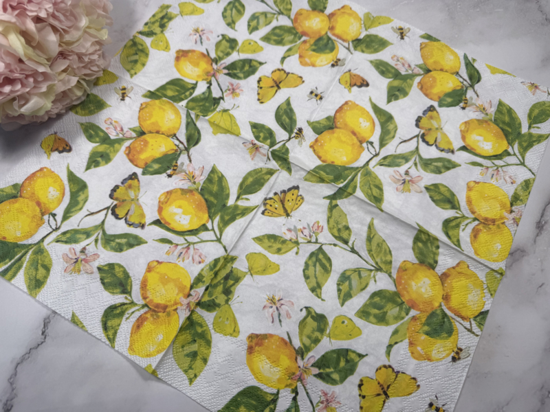 Citroenen en vlinders servet (33x33 cm open gevouwen ).Te gebruiken voor decoupage .